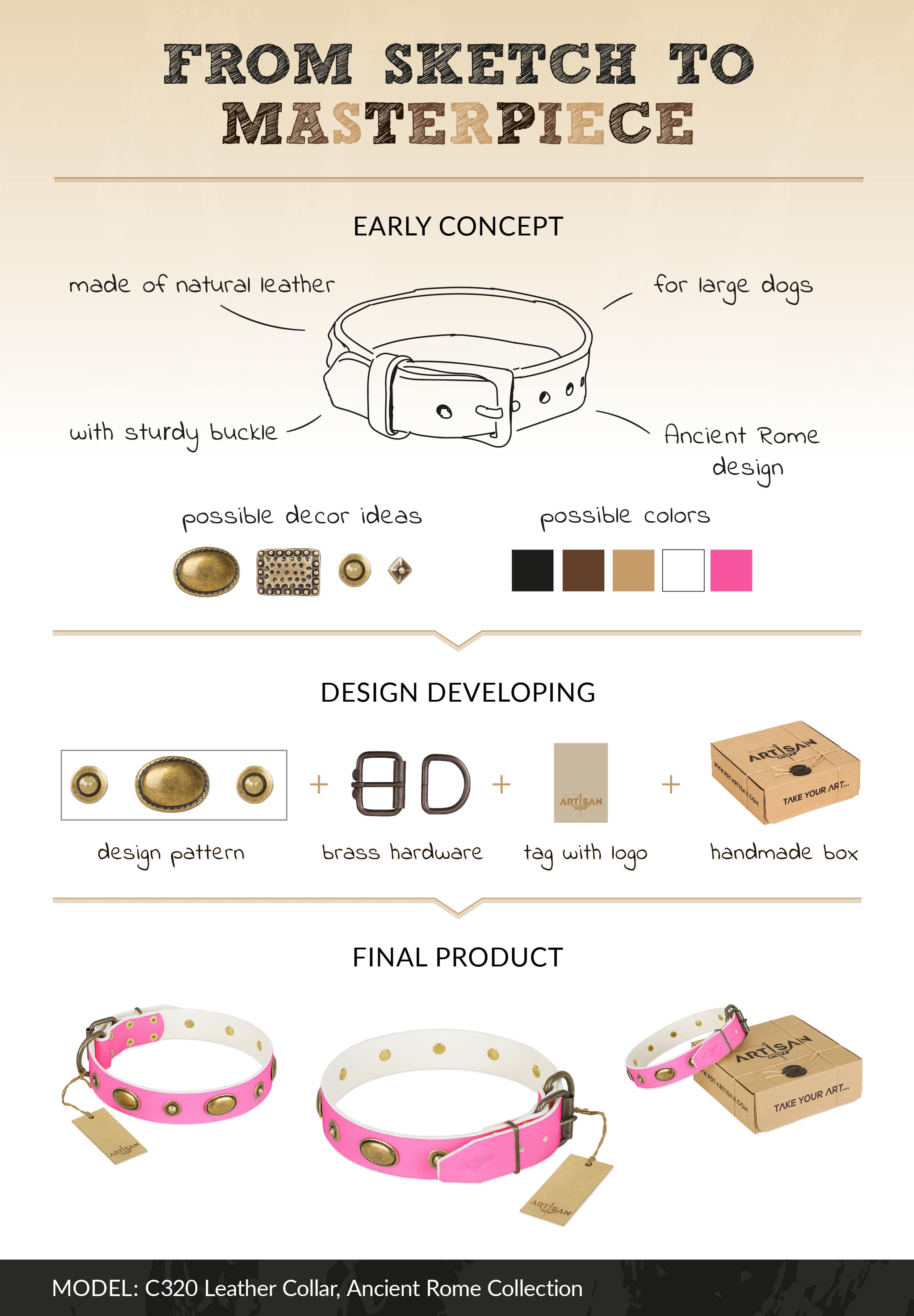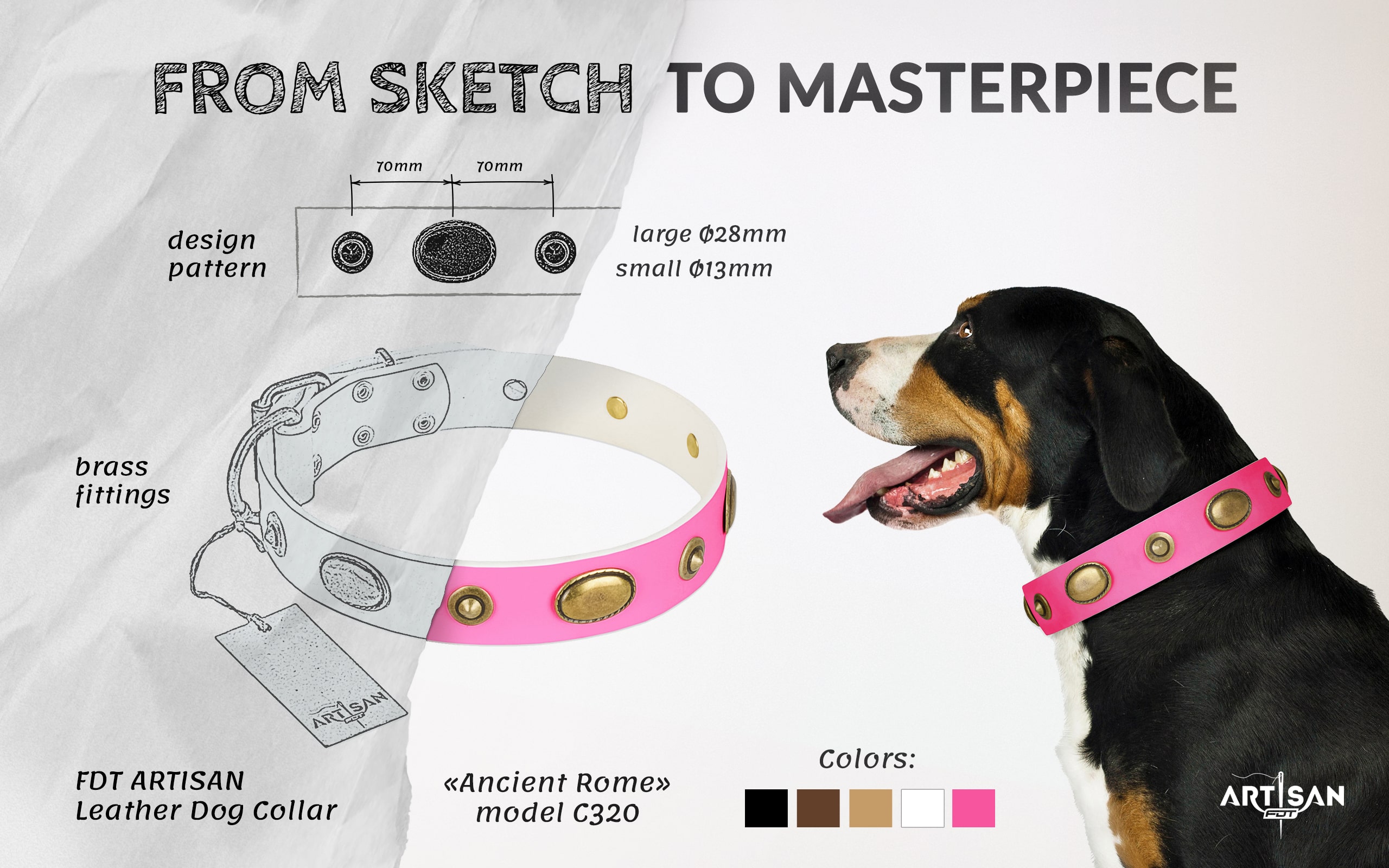 Ancient Rome Style Handmade Pink Leather Dog Collar with Studs