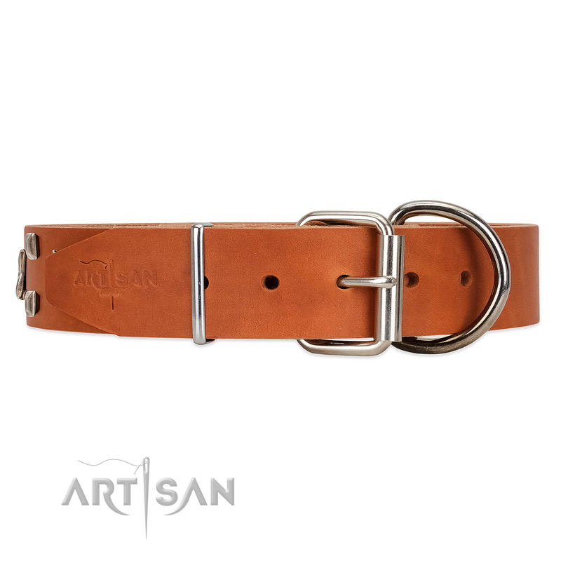 Reliable buckle on time-proof leather dog collar