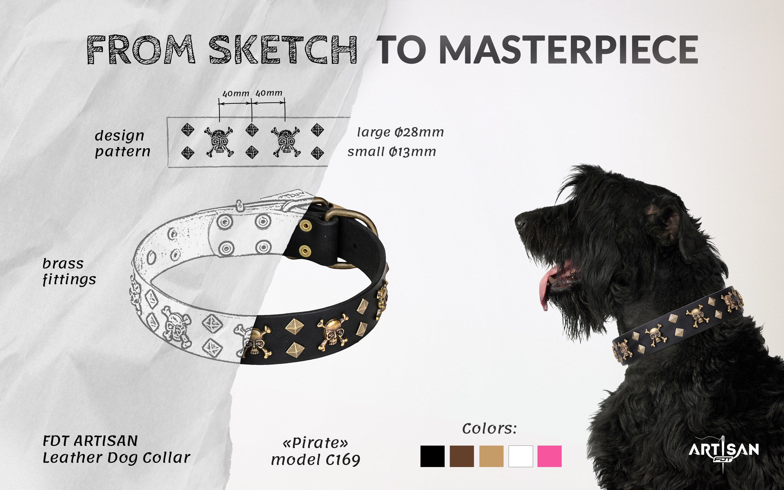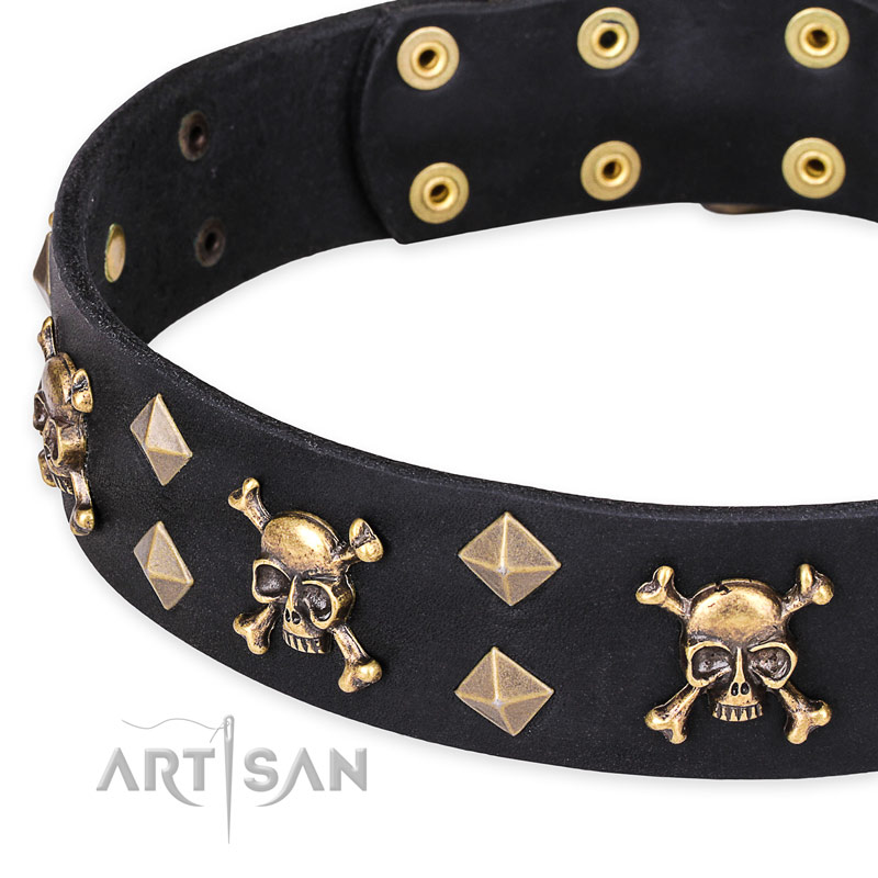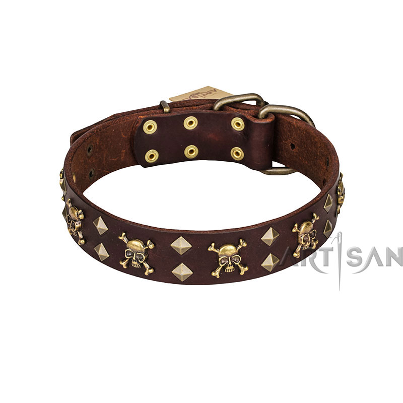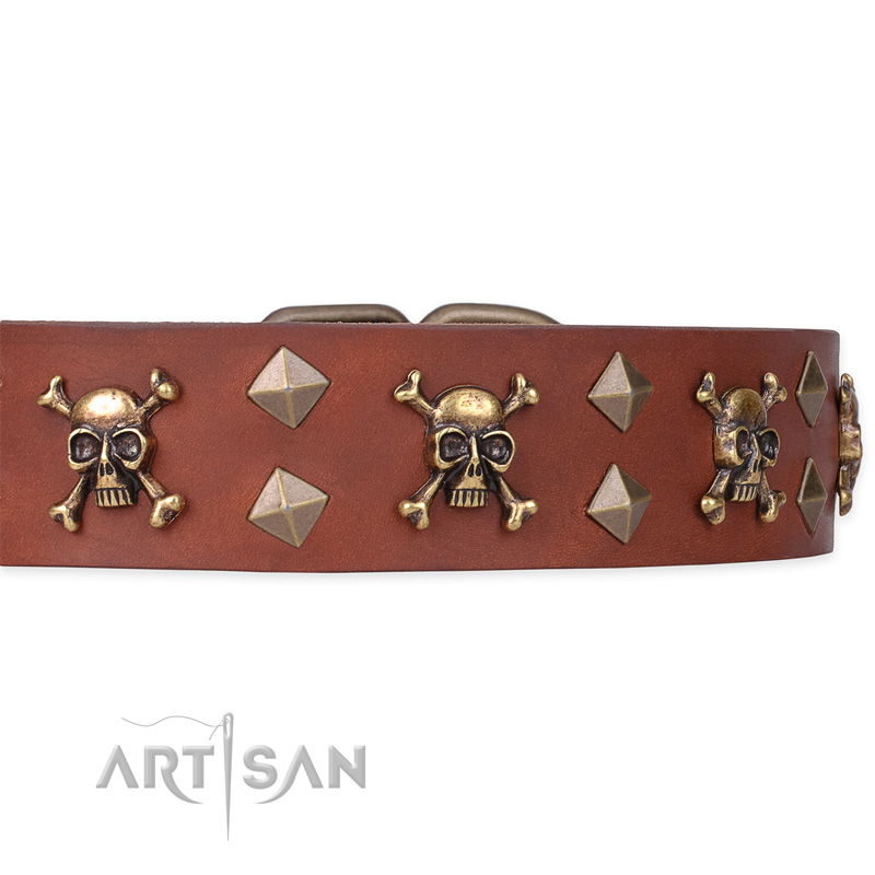 FDT Artisan Cool Design Leather Dog Collar with Pirate Skulls