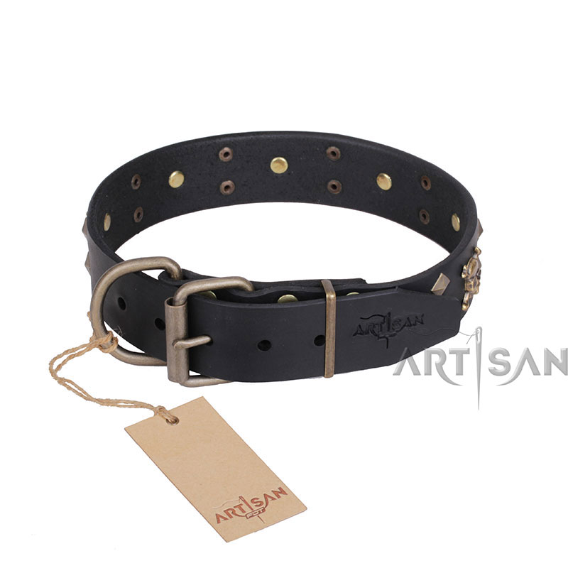 Pitbull easy adjustable full grain leather dog collar with decorations