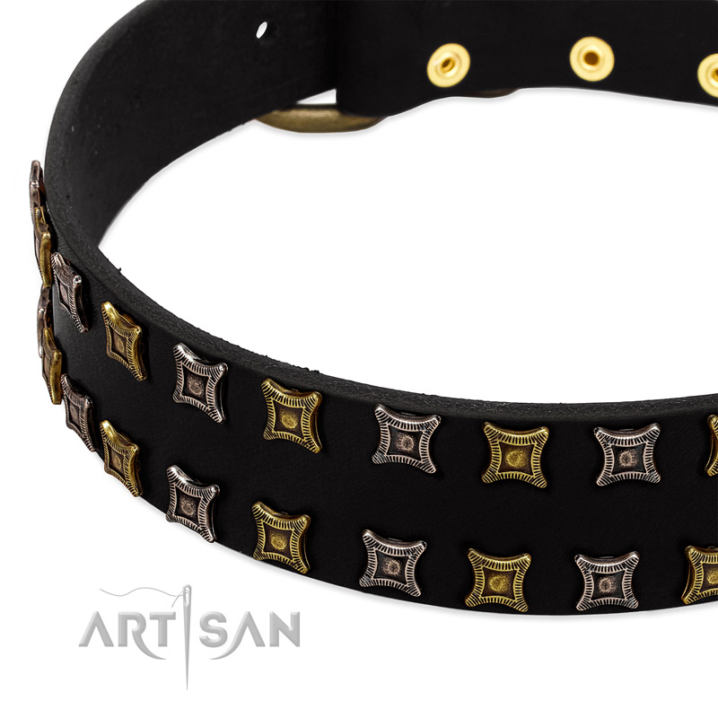 Extraordinary Artisan leather dog collar with trendy decorations
