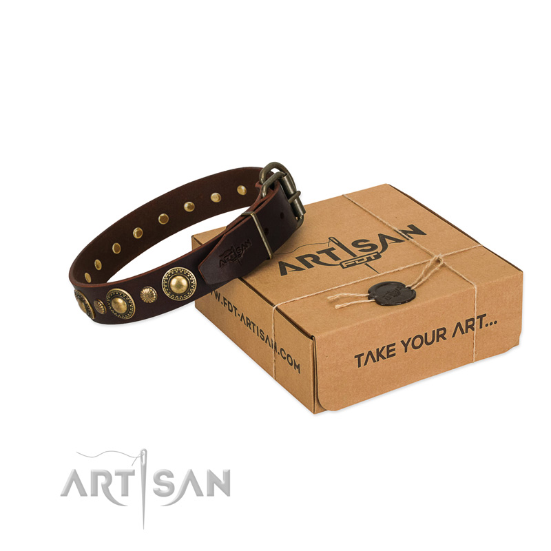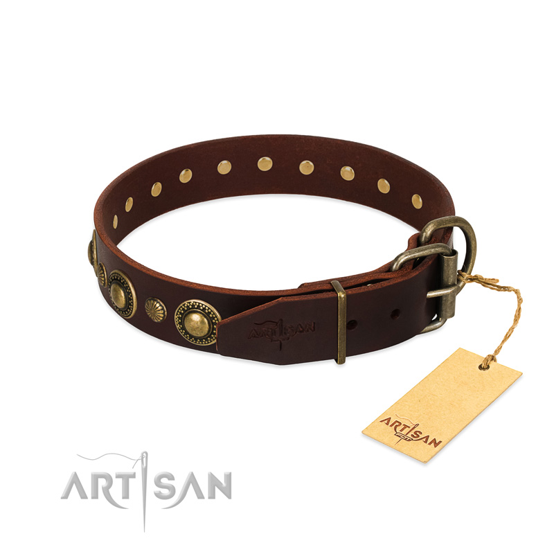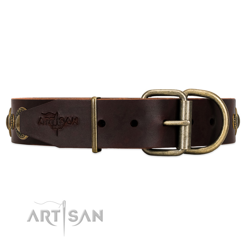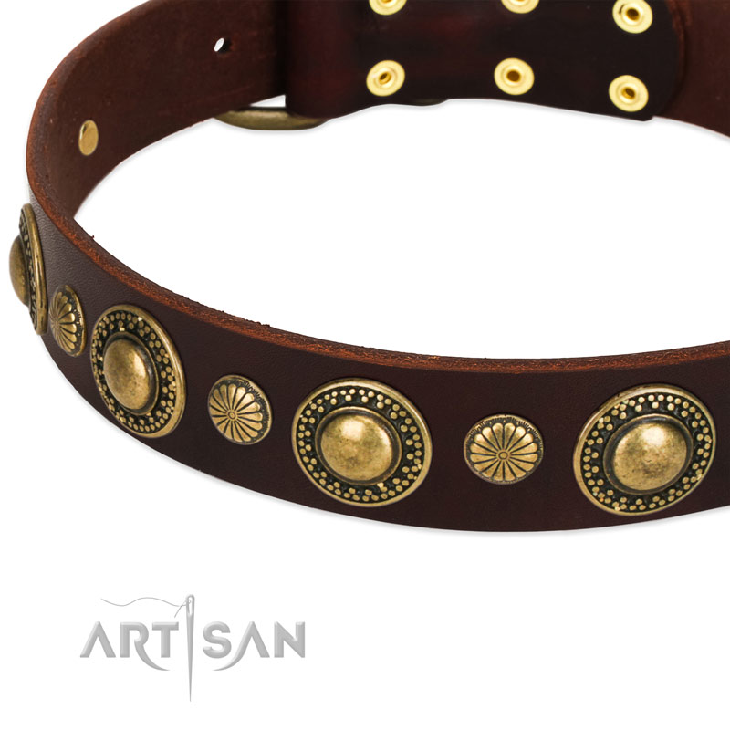 FDT Artisan Brown Leather Dog Collar with Handmade Brass Decorations