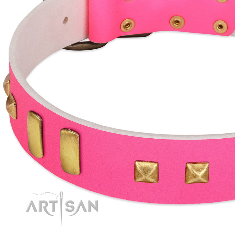 Are you in search of an elegant dog accessory for your lady canine? Don't miss a chance to get it at an affordable price! This FDT Artisan leather dog collar is produced in accordance with international standards and is made to last. Surround your pooch with comfort and safety when getting this amazing pet accessory. Your lady dog will look irresistible in this pink dog collar and will definitely knock everyone over.Â