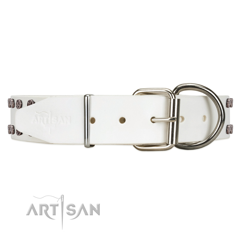 Premium Quality White Leather Dog Collar with Exquisite Decorations