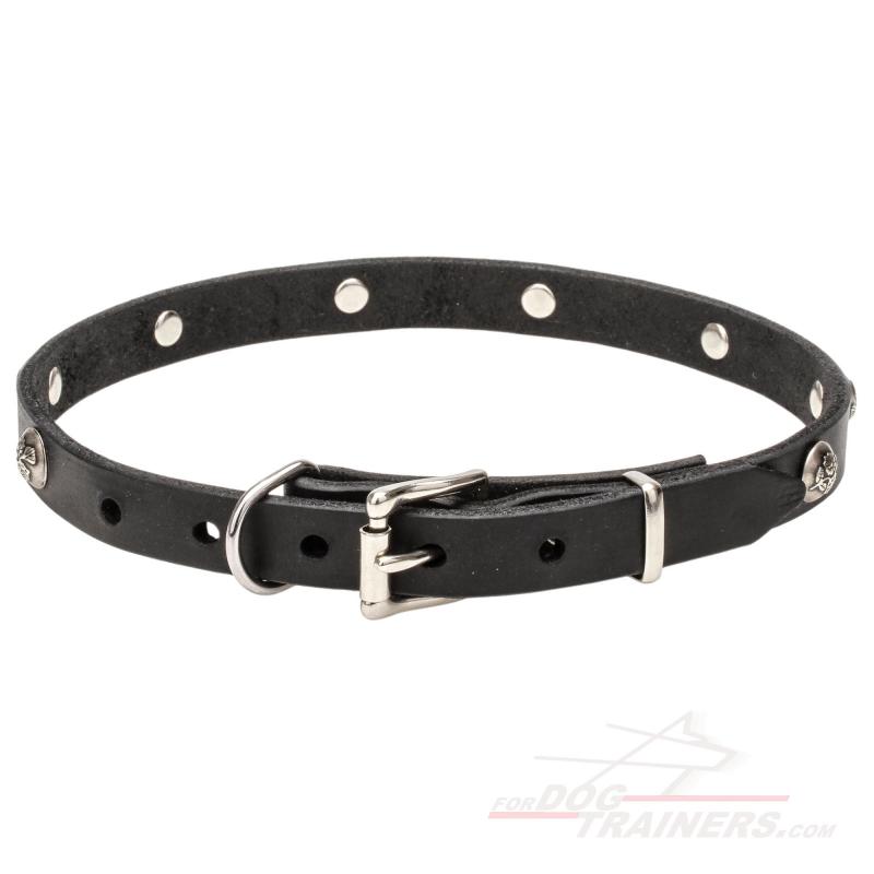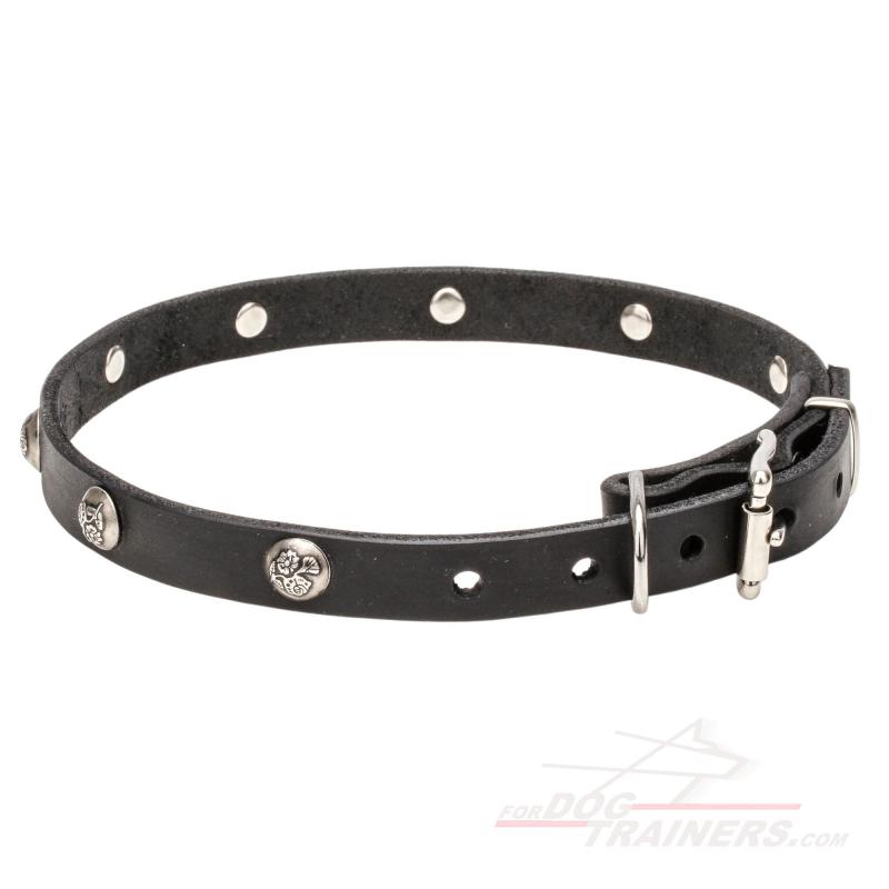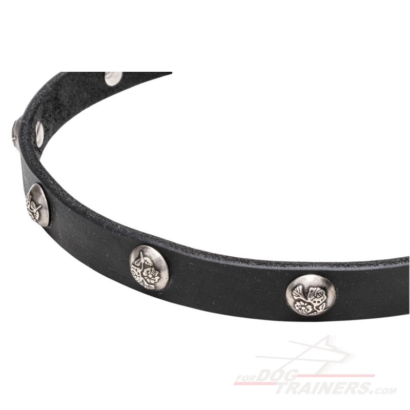 Then this Sweet Elegant Dog Collar is your choice! There are tiny studs which have lovely engravings of leaves and flowers. Such design must probably remind you of spring and smell of fresh grass. Moreover, the engravings look like shamrocks, famous Irish symbols of success and happiness. Wearing this item, your dog will not only feel your love but also be always in good mood and with a bit of Irish luck!