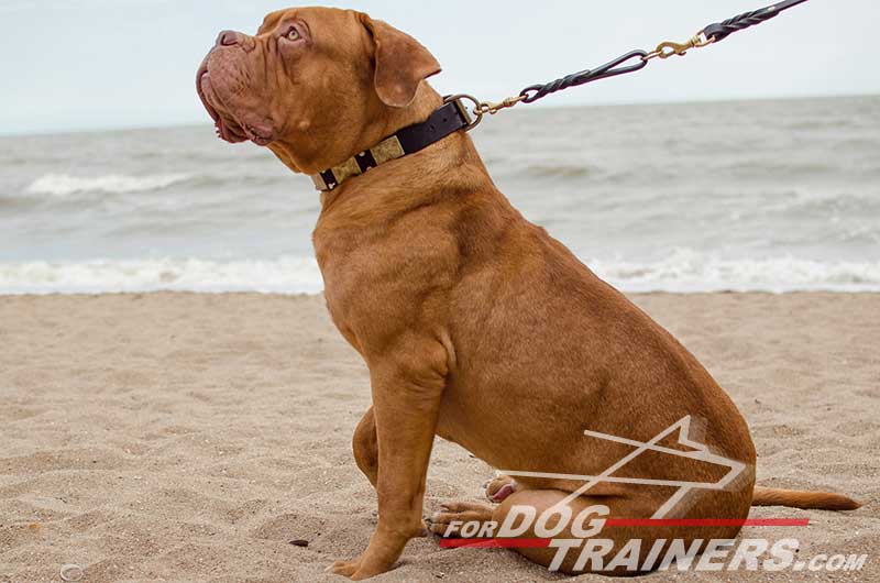 Quality Leather Dogue de Bordeaux Collar with brass hardware